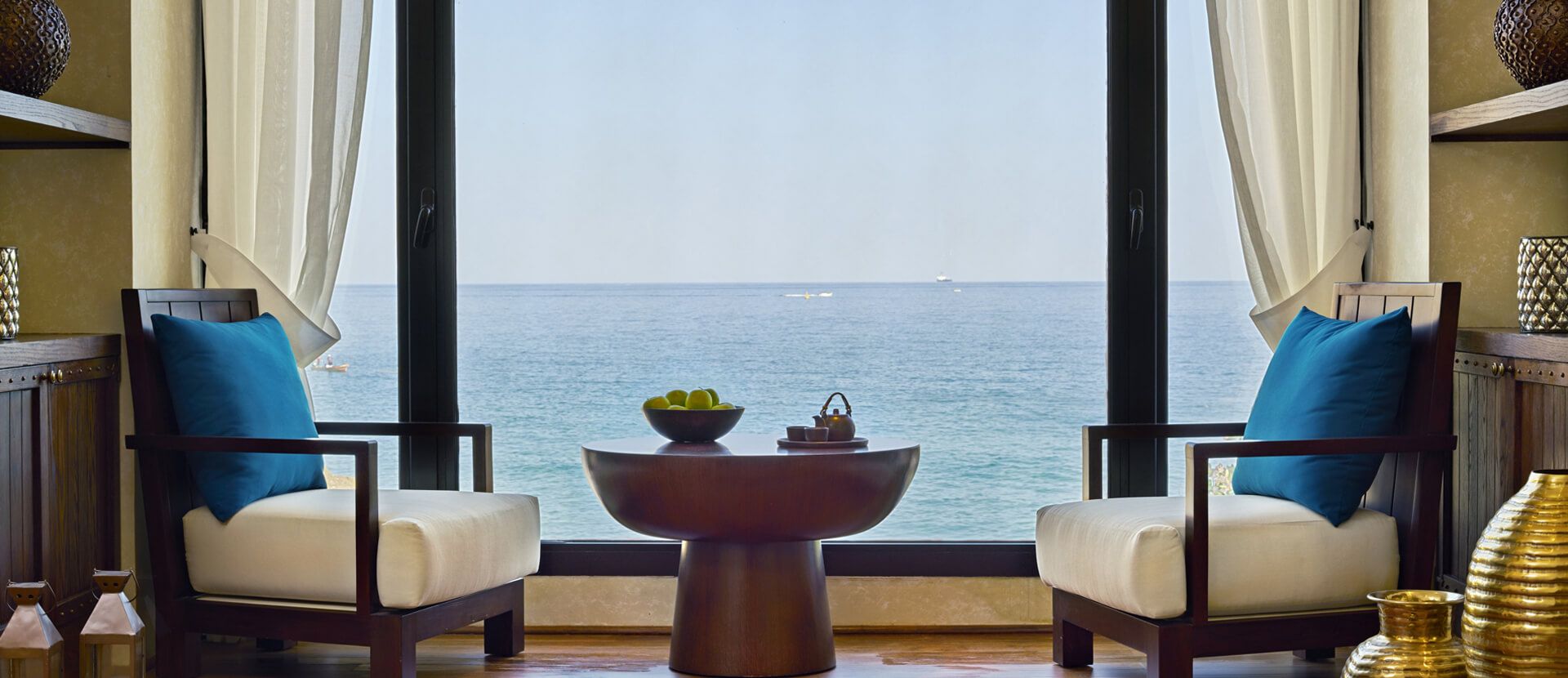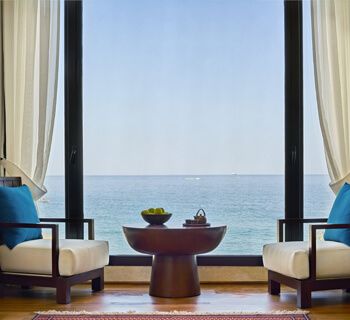 A newly-refurbished lobby of monumental marble greets you as you enter the palatial Al Bustan Palace, A Ritz-Carlton Hotel. Just a stone’s throw away from the historical city of Muscat, guests are invited to unwind in manicured gardens and enjoy views of the Gulf of Oman and the impressive Al Hajar Mountains.