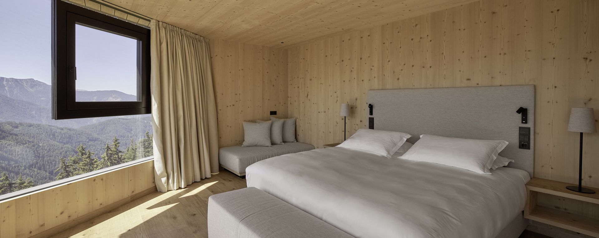 The unique healing properties of this special site - the combination of pure Plose spring water, fresh mountain air, plentiful sunny days and mild climate – prompted the Austrian monarchy to establish a tuberculosis sanatorium and the architecture of FORESTIS is inspired by the same elements, working in harmony to create spaces for profound transformation.