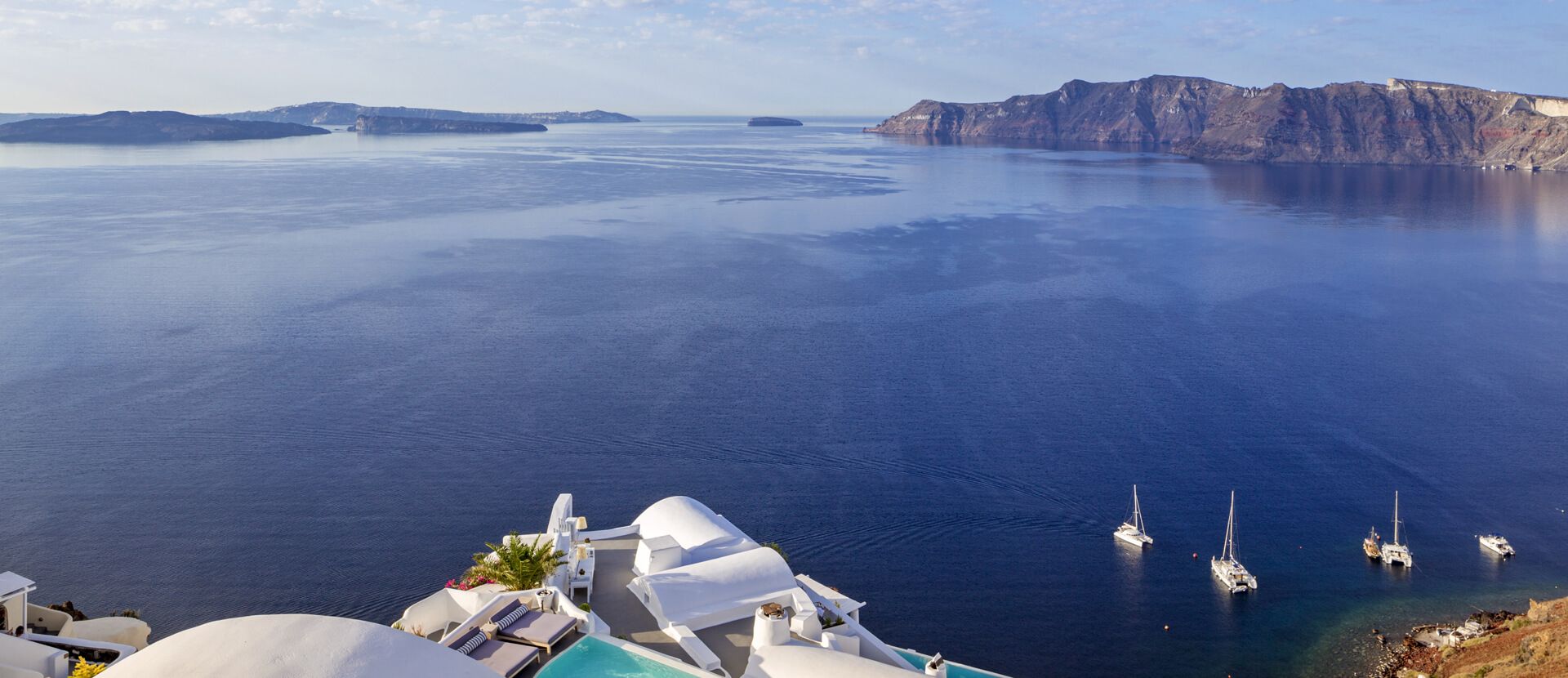 A romantic retreat in Oia, Santorini, Katikies Santorini offers a warm welcome and impeccable service. The setting is exceptional, with magnificent views of the turquoise waters from all luxury suites. The pristine, bright white building provides the perfect backdrop for beautiful, manicured pink bougainvilleas - and the ideal venue for romance and relaxation.
