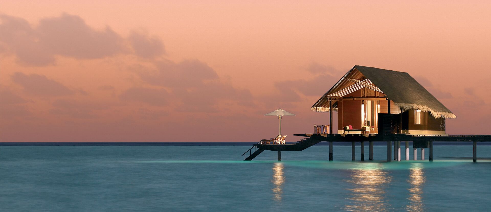 The resort offers 122 spacious villas, offering guests a peaceful sanctuary and an array of luxurious amenities. Beach Villas have access to a private beach, while Water Villas feature sun decks that are suspended over the lagoon. The top-of-the-range Grand Sunset residence is located on the island’s largest private beach and has its own swimming pool and stylish spaces for entertaining and relaxing.