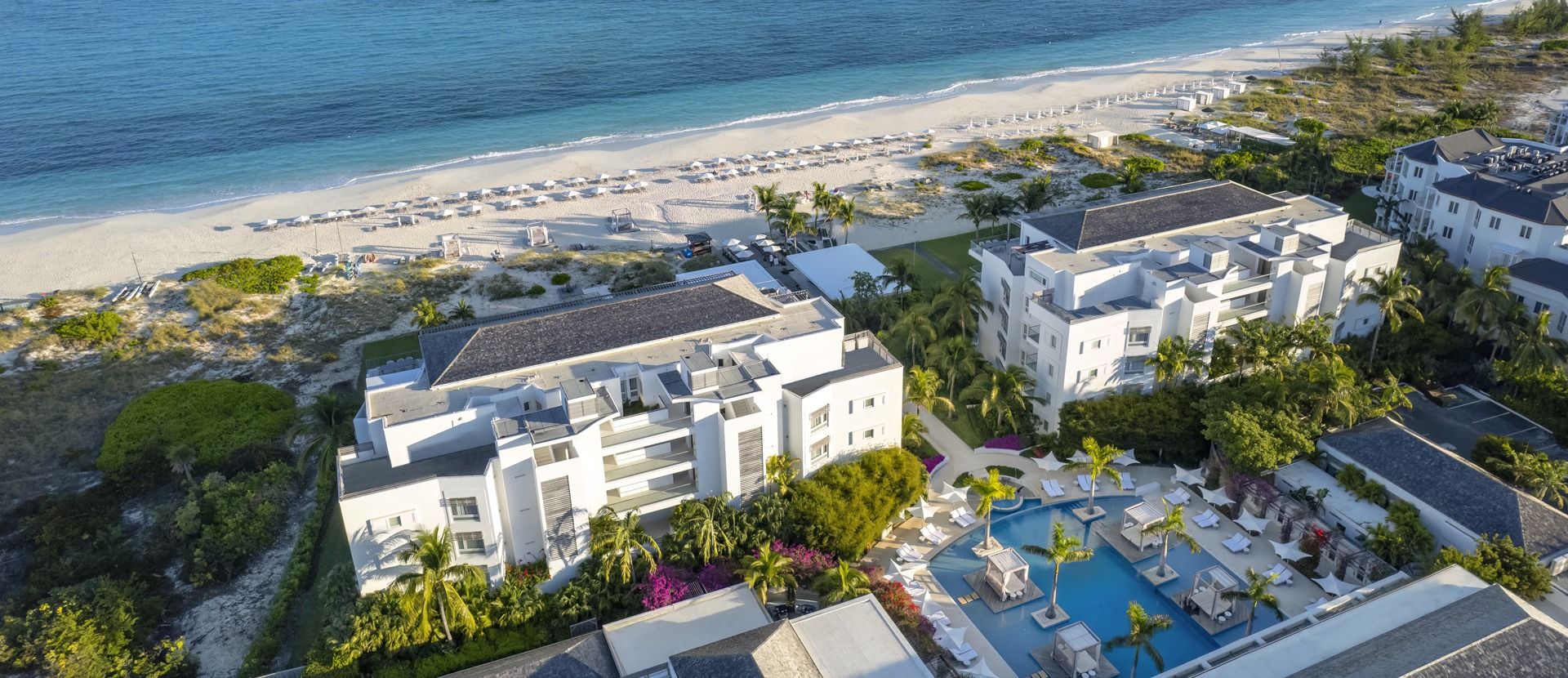 Private transfers are 15 minutes from Providenciales Airport / 91 Rooms & Suites / 12 Private Villas (One, Four and Five Bedrooms) / Restaurants: Indigo + Blue Water Bistro / Bars: Tiki Bar (Wymara Villas) + Pink Bar / Spa / 24-Hour Fitness Centre / Swimming Pool / Non-Motorised Water Sports / Beach Club / Boutique / Yoga